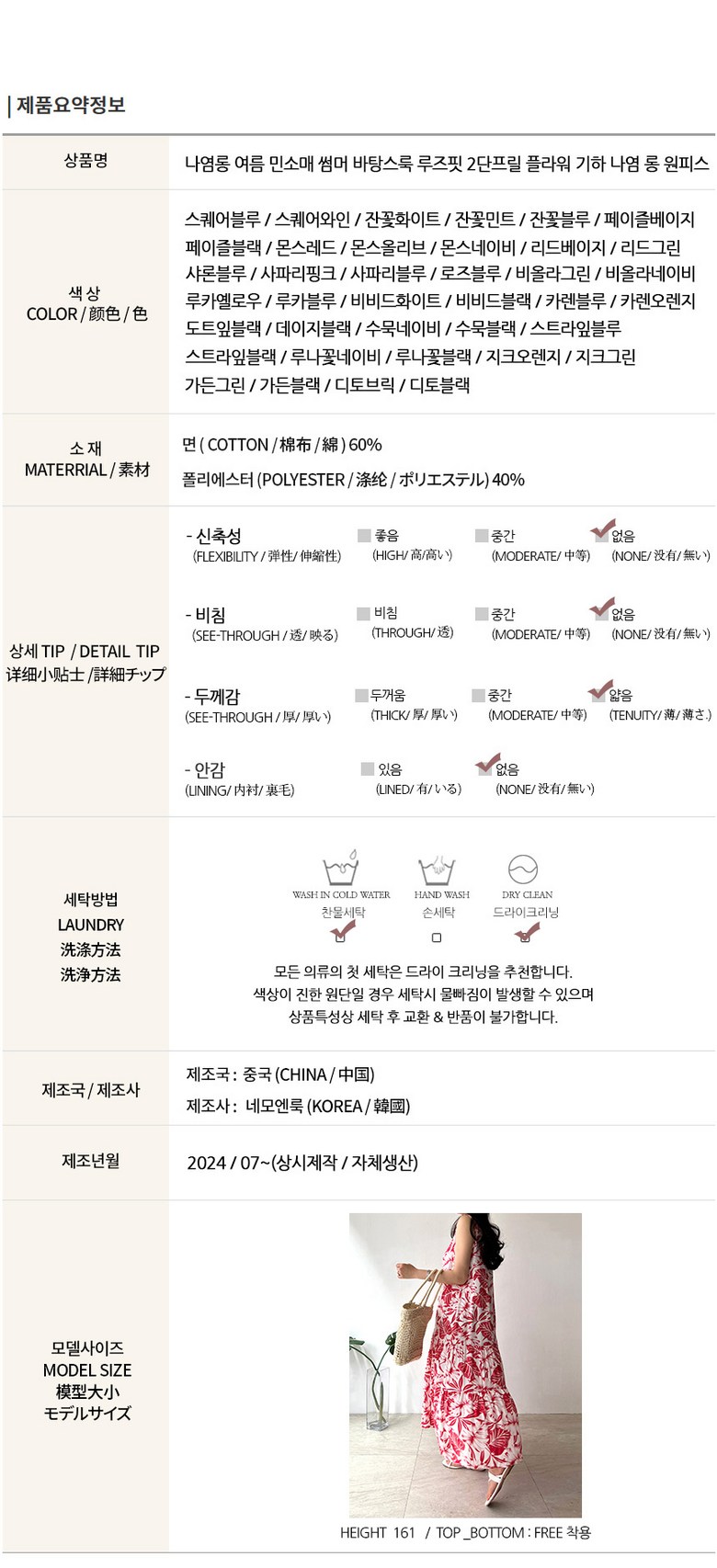 | 제조국 | 중국OEM | 세탁방법 및 취급시 주의사항 | 상품 상세페이지 참조 |