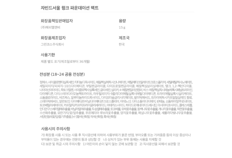 | 화장품제조업자, 화장품책임판매업자 및 맞춤형화장품판매업자 | 상품 상세페이지 참조 | 제조국 | 상품 상세페이지 참조 |