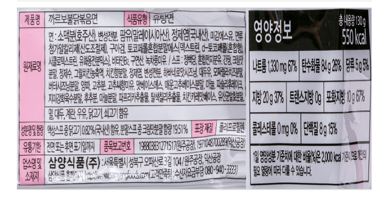 | 제품명 | 상품 상세페이지 참조 | 식품의 유형 | 상품 상세페이지 참조 |