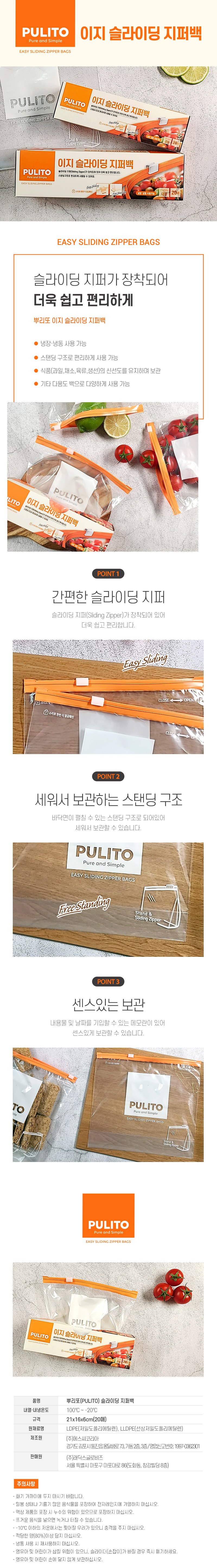 | 품명 및 모델명 | 뿌리또(PULITO) 슬라이딩지퍼백 | 재질 | 컨텐츠 참조 |