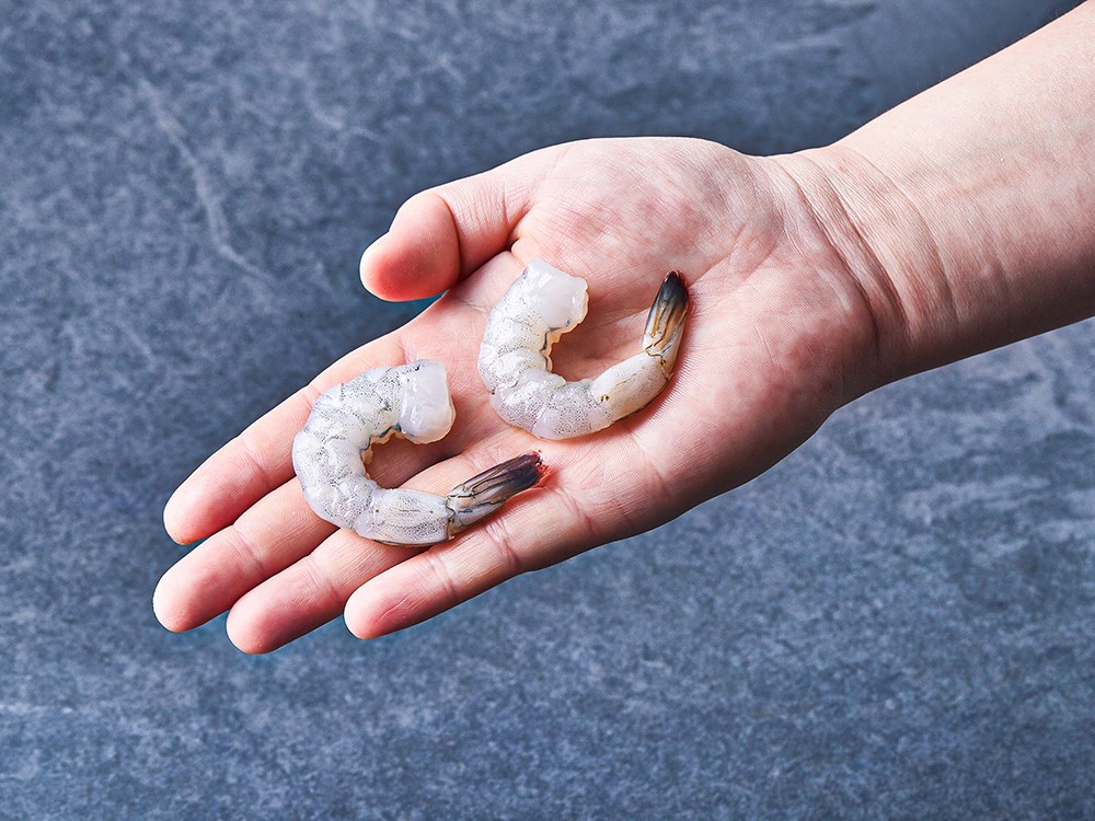 1. 새우살은 흐르는 물에 해동 후, 꼬리를 손질해주세요.