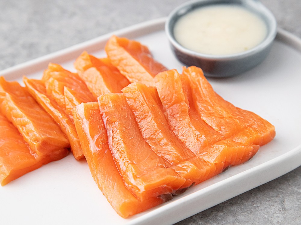 고소한 풍미가 담긴 훈제연어예요. 정제소금으로 간을 맞춰 짭조름한 감칠맛을 선사해요. 먹기 좋게 슬라이스 되어 있고, 냉장 제품이기 때문에 바로 드실 수 있어 더욱 간편하답니다. 동봉된 소스를 곁들여 초밥, 샐러드 등으로 즐겨보세요.