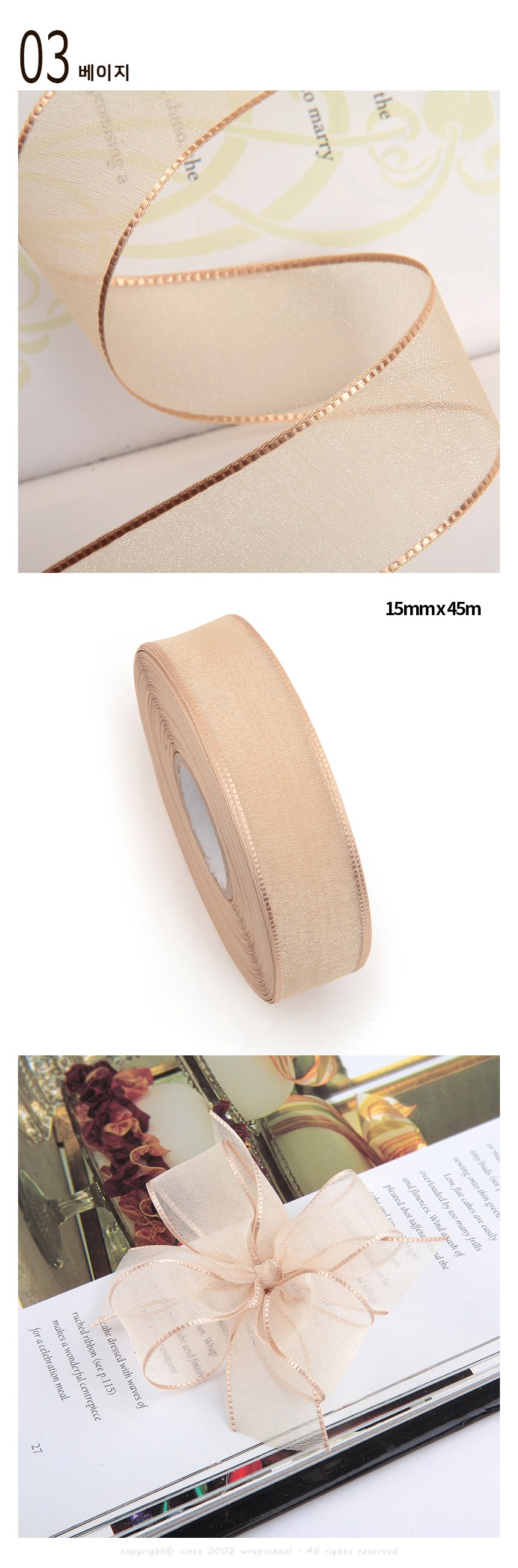 | 품명 및 모델명 | 포장넷 펄샤인 오간디 리본끈 15mm x 45m | 인증/허가 사항 | 해당없음 |