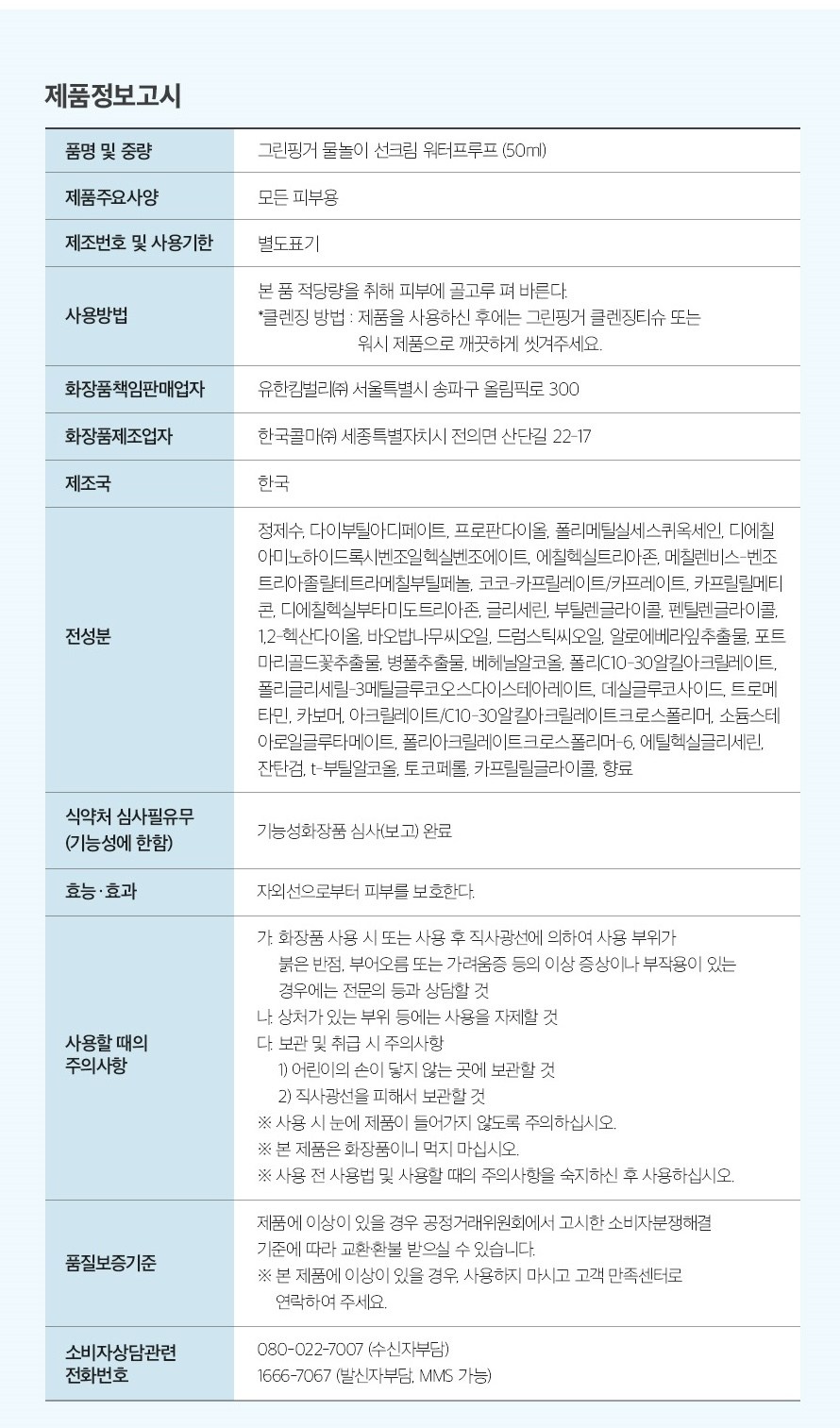 | 용량(중량) | 50ml | 제품 주요 사양 | 모든 피부용 |
