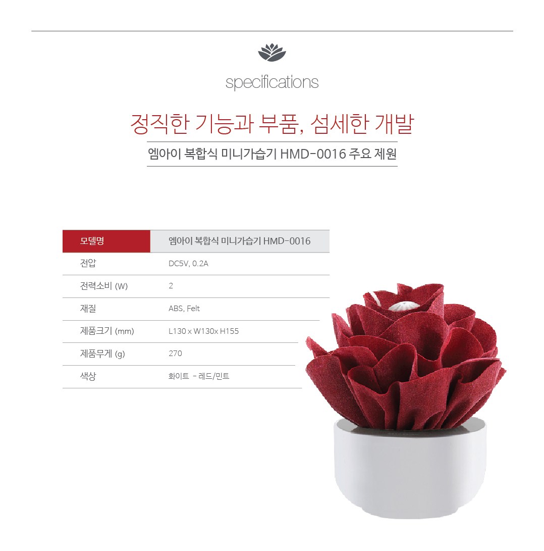| 품명 및 모델명 | 가습기 HMD-0016 | KC 인증정보 | 해당사항없음 |