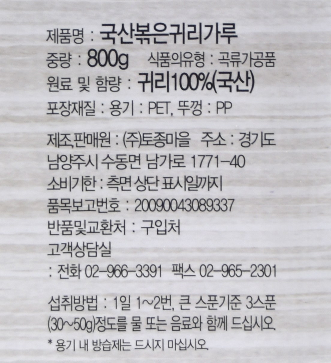 | 포장단위별 내용물의 용량(중량), 수량 | 800g | 원재료명 및 함량 | 컨텐츠 참조 |