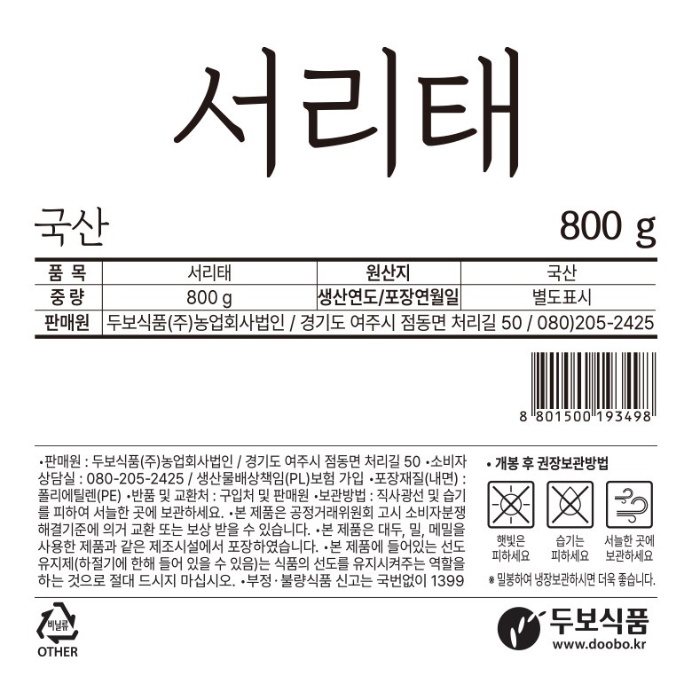 | 품목 또는 명칭 | 컨텐츠 참조 | 포장단위별 내용물의 용량(중량),수량,크기 | 800g, 1개 |