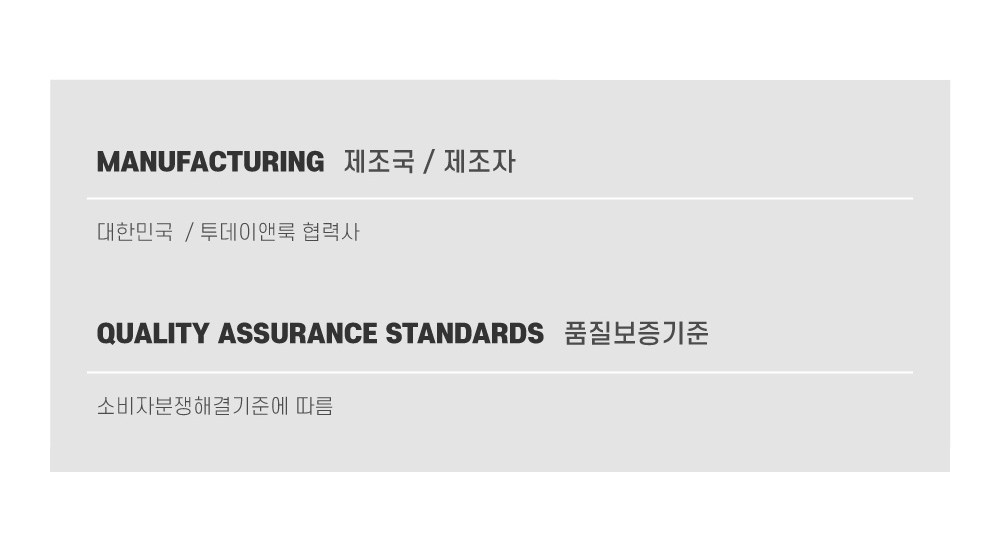 | 치수 | 컨텐츠참조 | 제조자(수입자) | 투데이앤룩 협력업체 (정확한 제조사 정보 업체미제공) |