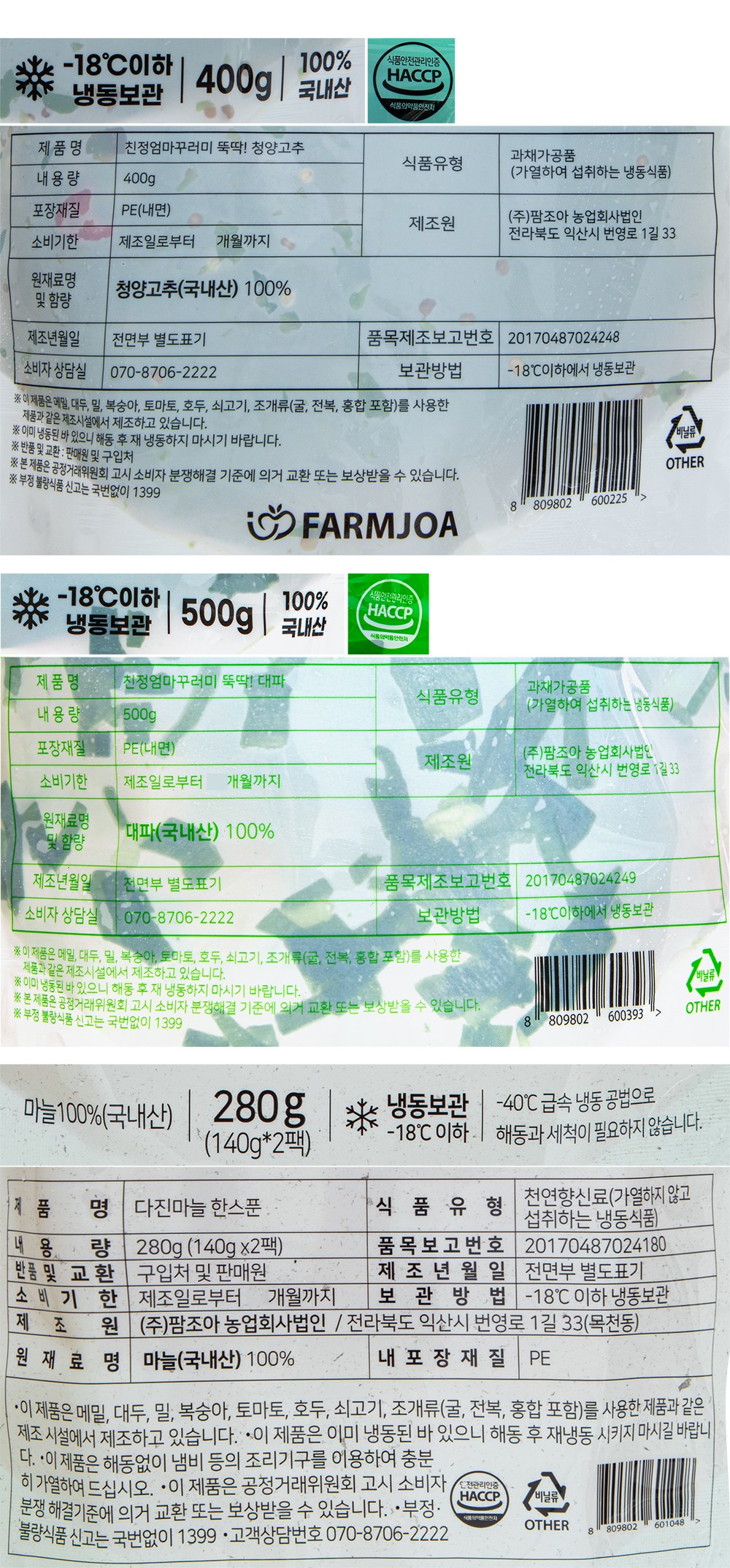 | 제품명 | 냉동 다진마늘 + 친정엄마꾸러미 뚝딱!대파 + 친정엄마꾸러미 뚝딱! 청양고추 | 식품의 유형 | 컨텐츠참조 |