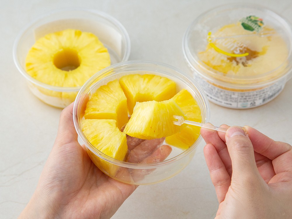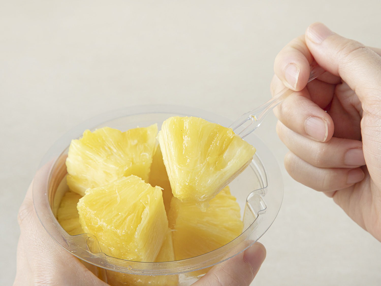 샛노란 과육을 베어 물면 상큼한 과즙이 입안 가득 퍼지는 파인애플. 필리핀의 따스한 햇살을 받고 자란 파인애플로 만나보세요. 껍질은 제거하고 한입 크기로 손질해 간편하게 드실 수 있죠. 가방에 쏙 넣어 언제 어디서나 새콤달콤한 파인애플을 즐겨보세요.
