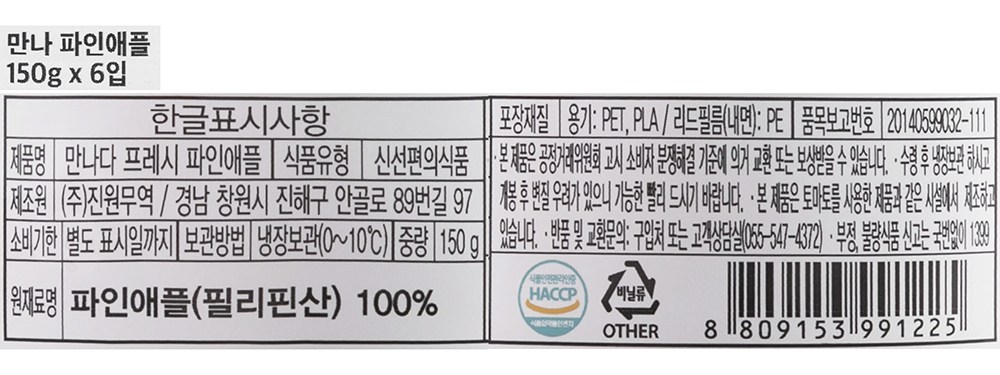 | 포장단위별 내용물의 용량(중량), 수량 | 150g x 6개 | 원재료명 및 함량 | 컨텐츠 참조 |