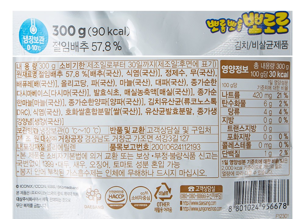 | 제품명 | 종가집 어린이 한입 백김치 | 식품의 유형 | 컨텐츠 참조 |
