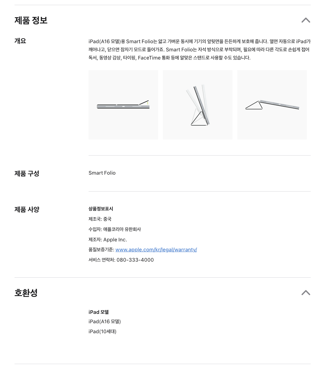 | 품명 및 모델명 | Apple Smart Folio iPad A16, 스카이 (MDEQ4FE/A) | 인증/허가 사항 | 해당없음 |