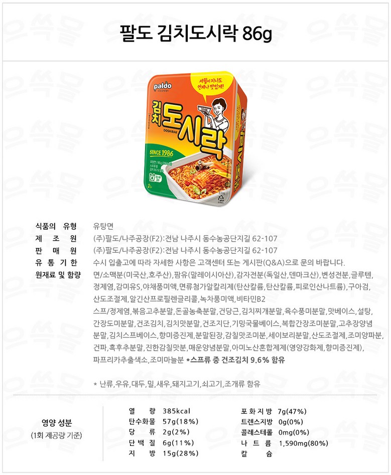 | 제품명 | 상품 상세페이지 참조 | 식품의 유형 | 상품 상세페이지 참조 |