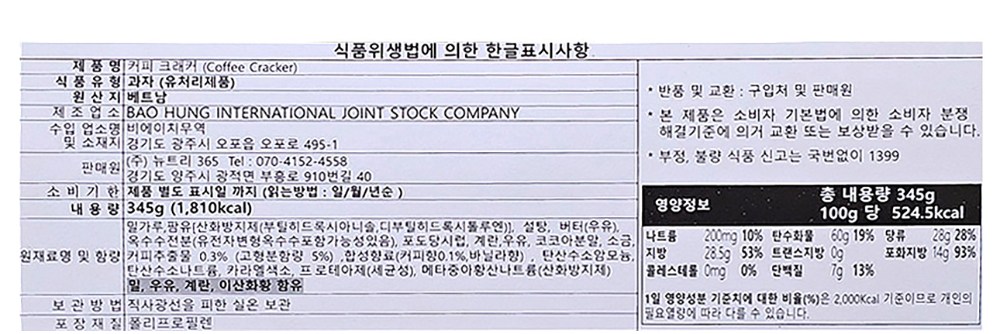 - 과자 종류: 과자/쿠키/비스킷