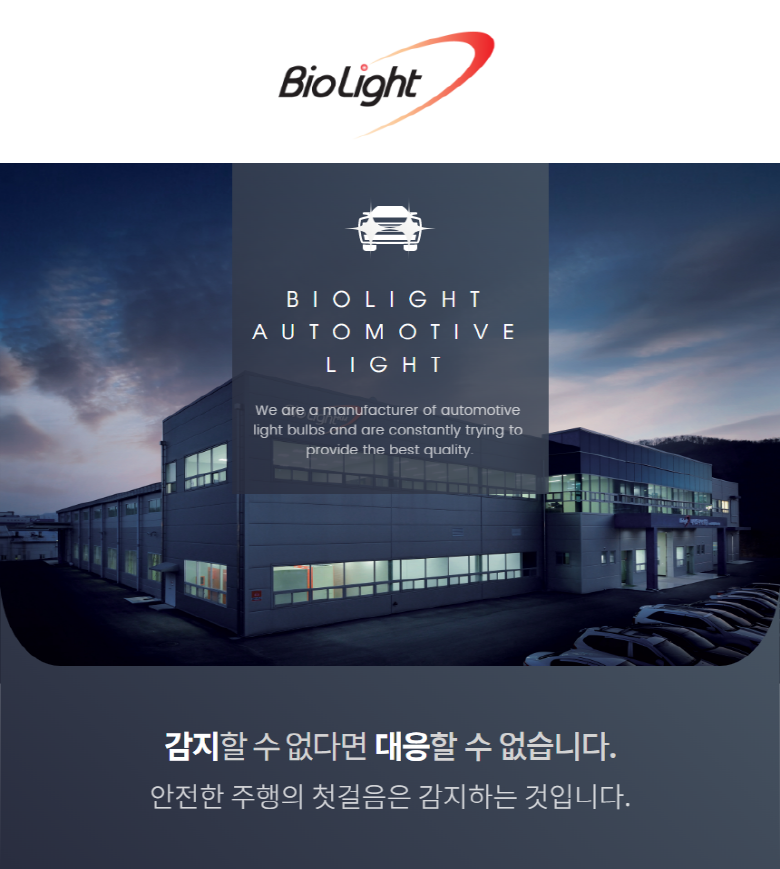 | KC 인증정보(자동차관리법에 따른 자기인증 대상 자동차부품에 한함) | 해당없음 | 제조자(수입자) | 바이오라이트 |