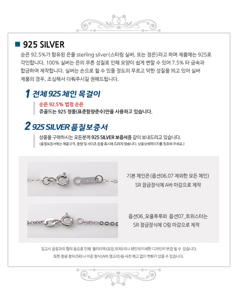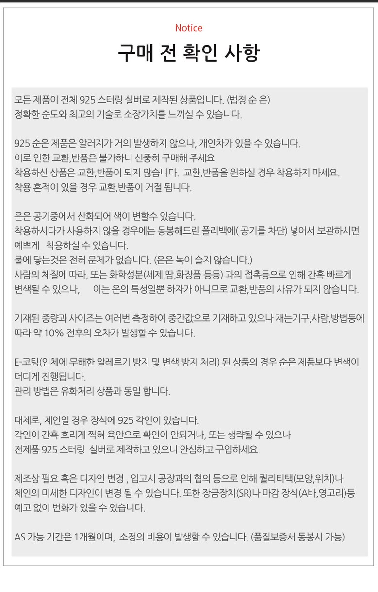 | 소재/순도/밴드재질 | 925 순은 | 중량 | 상품 상세페이지 참조 |