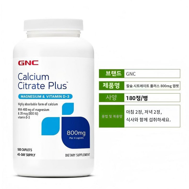 | 제품명 | GNC Jian Anxi 칼슘 구연산 복합 정제 180 정제 (800 mg/서빙) | 식품의 유형 | 상품 상세페이지 참조 |