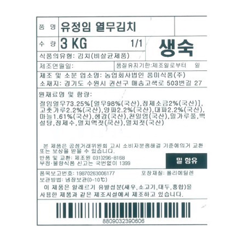 | 제품명 | 유정임 열무김치 | 식품의 유형 | 컨텐츠 참조 |