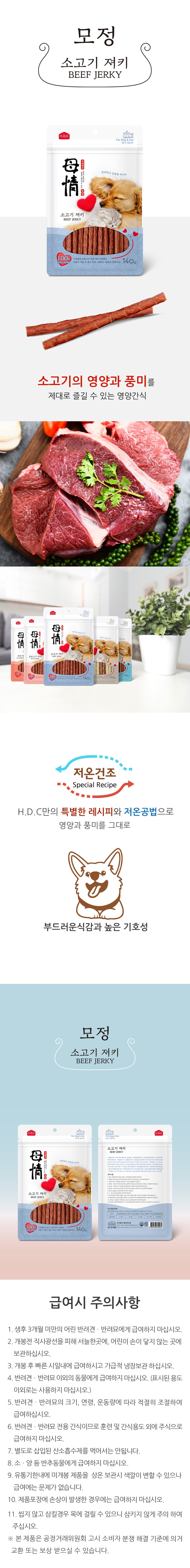 | 품명 및 모델명 | 모정 소고기 져키 | 인증사항 | 사료관리법에 따른 성분등록번호 : 컨텐츠 참조 |