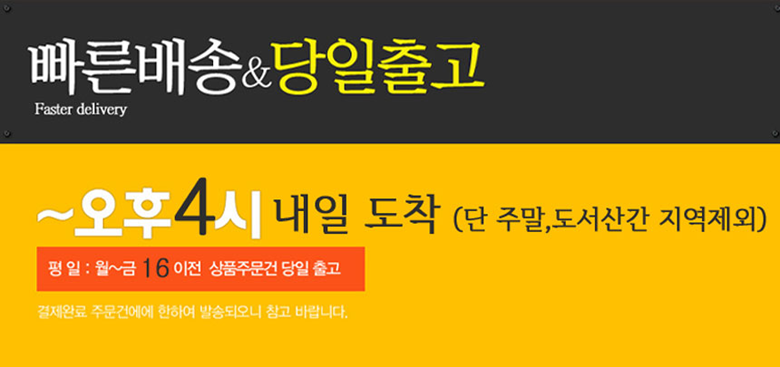 | 배송기간 | ㆍ도서산간 지역 등은 배송에 3-5일이 더 소요될 수 있습니다. - 천재지변, 물량 수급 변동 등 예외적인 사유 발생 시, 다소 지연될 수 있는 점 양해 부탁드립니다. | ||