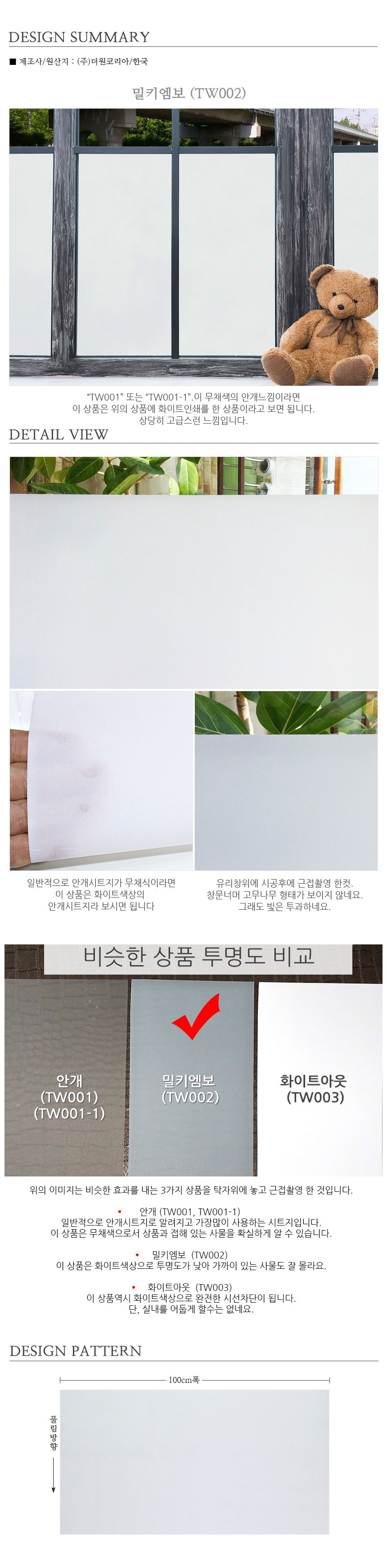 | 품명 및 모델명 | 무첨착창문시트지 (TW002) | 인증/허가 사항 | 해당없음 |