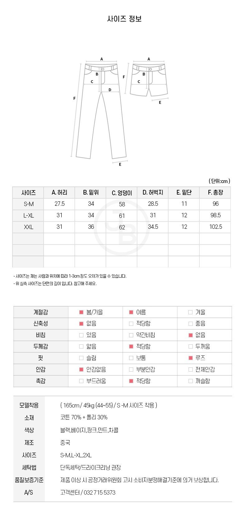 - 하의 사이즈: 여성 XXL (33~34인치)