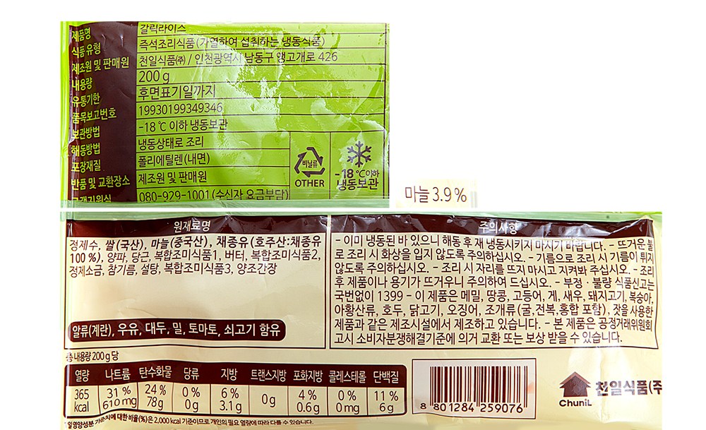 | 제품명 | 갈릭라이스 | 식품의 유형 | 컨텐츠 참조 |