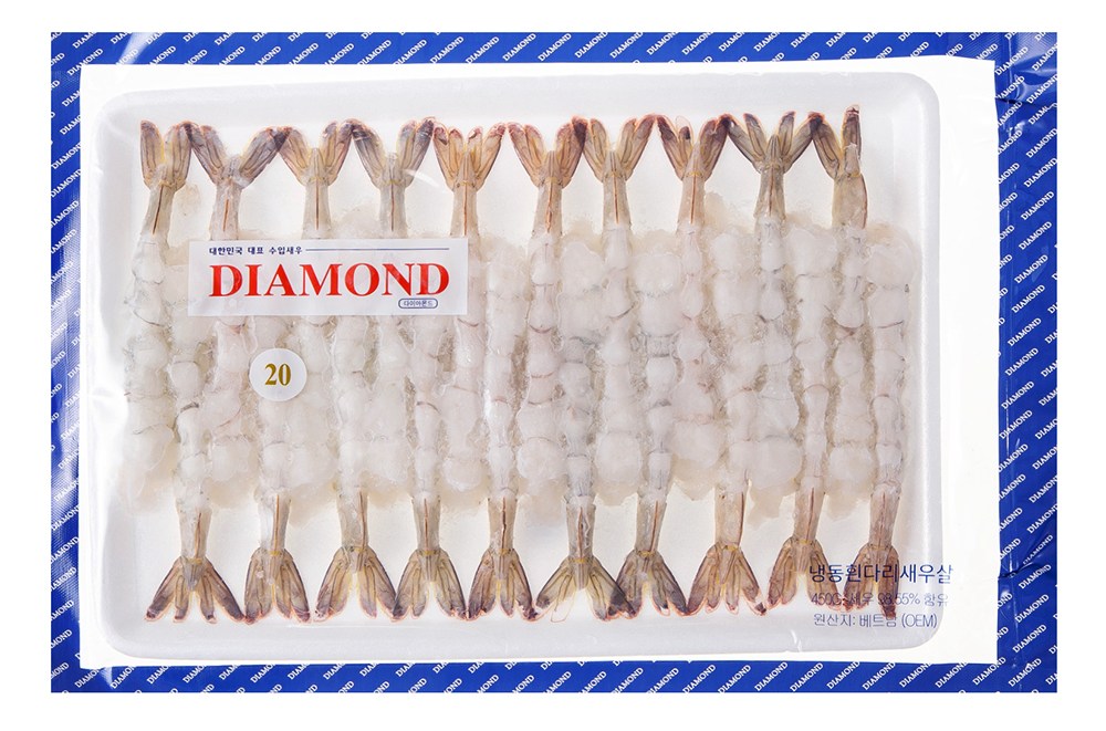 통통하고 실한 흰다리새우를 엄선해 꼬리를 남기고 튀김용으로 손질했어요. 새우 본연의 담백하고 고소한 풍미가 살아있죠. 그대로 튀겨주기만 하면 노릇노릇 먹음직스러운 새우튀김이 완성된답니다. 기호에 맞는 소스를 곁들여 풍성하게 즐겨보세요.