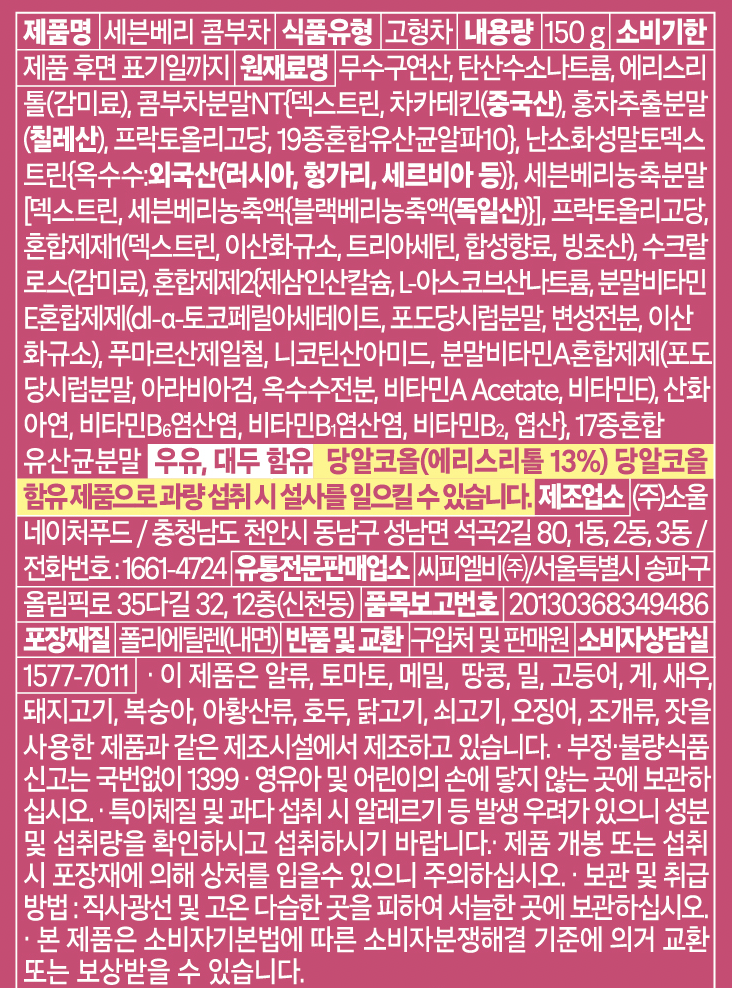 | 제품명 | 컨텐츠 참조 | 식품의 유형 | 컨텐츠 참조 |