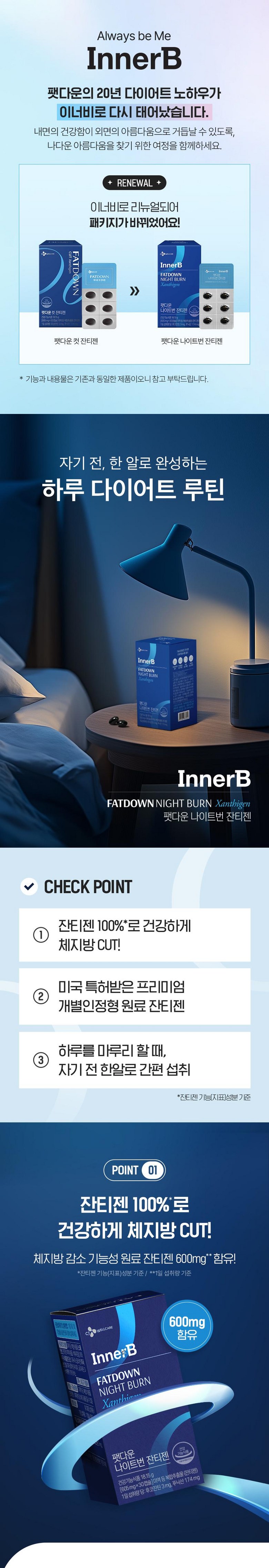 | 제품명 | ■이너비 팻다운 나이트번 잔티젠 | 제조업소의 명칭과 소재지 | ■ 제조원 : ㈜노바렉스 2공장 / 충청북도 청주시 청원구 오창읍 각리 1길 60■ 유통전문판매원 : 씨제이웰케어 |