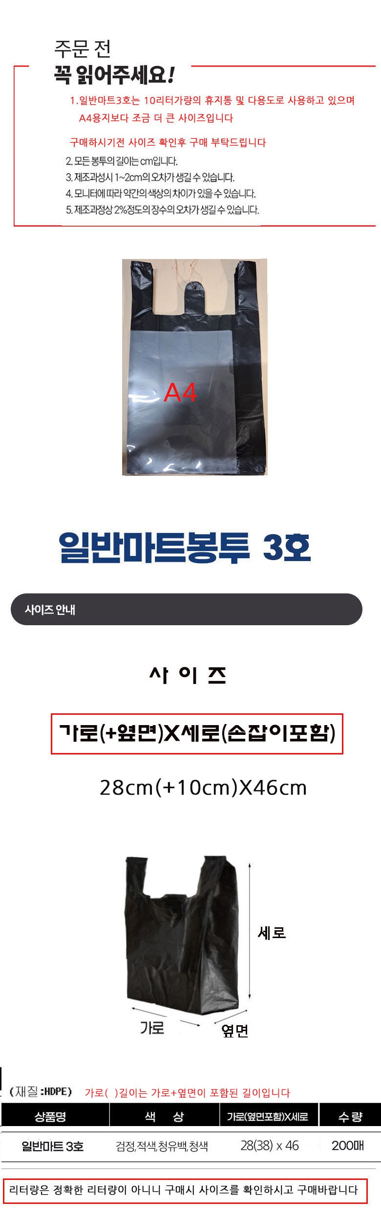 | 품명 및 모델명 | 부국 손잡이비닐 일반마트봉투3호검정 | 인증/허가 사항 | 해당없음 |