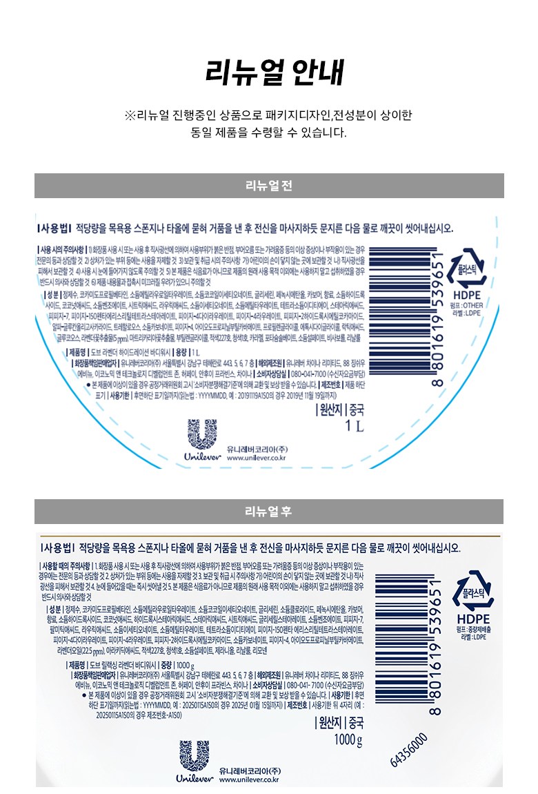 | 용량(중량) | 1L | 제품 주요 사양 | 모든 피부용 |