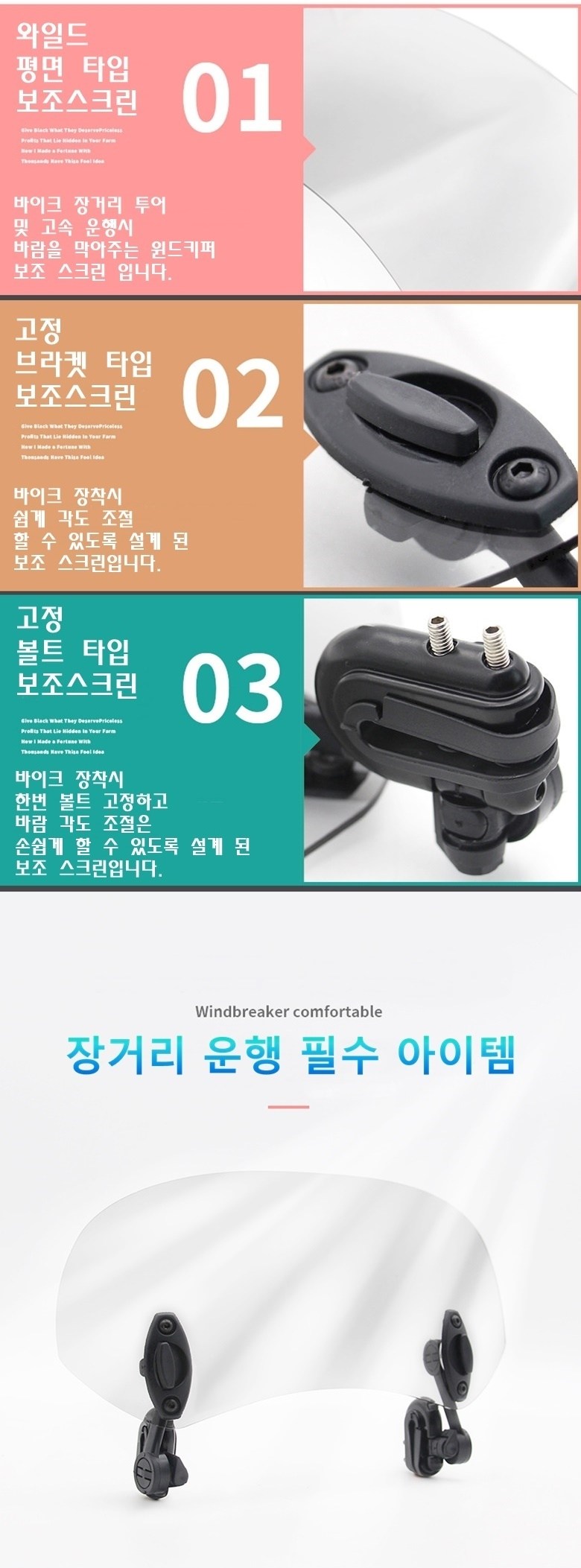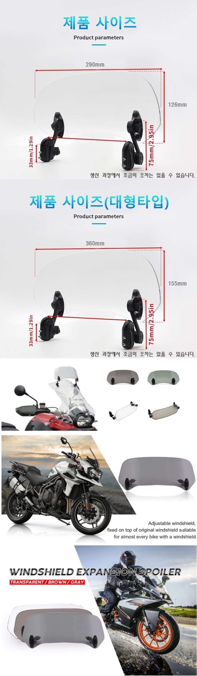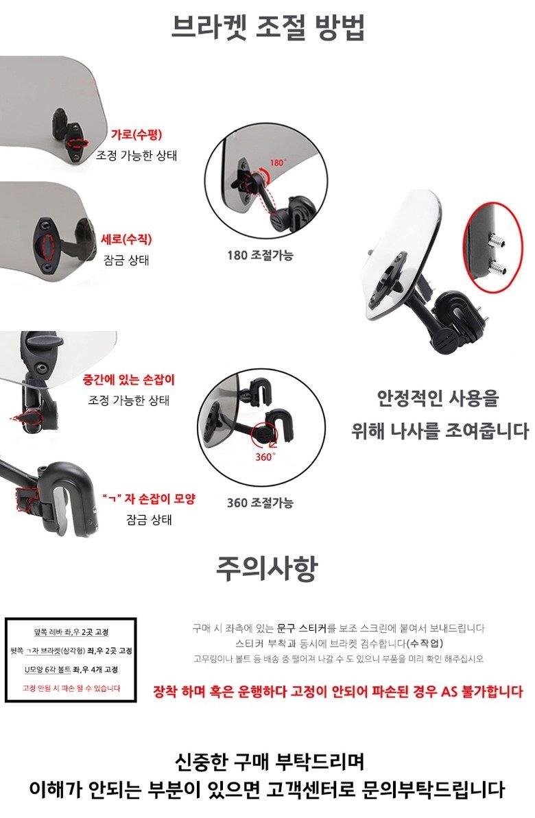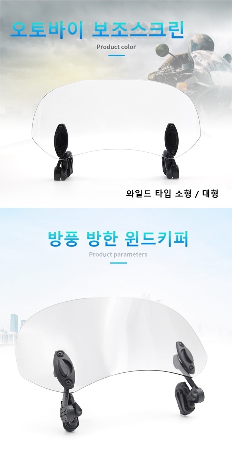 제로몰 오토바이 와일드 소형 대형 평면 굴곡없는 보조스크린 윈드쉴드 바람막이 바이크스크린 ( 브라켓 조립 완성품 )