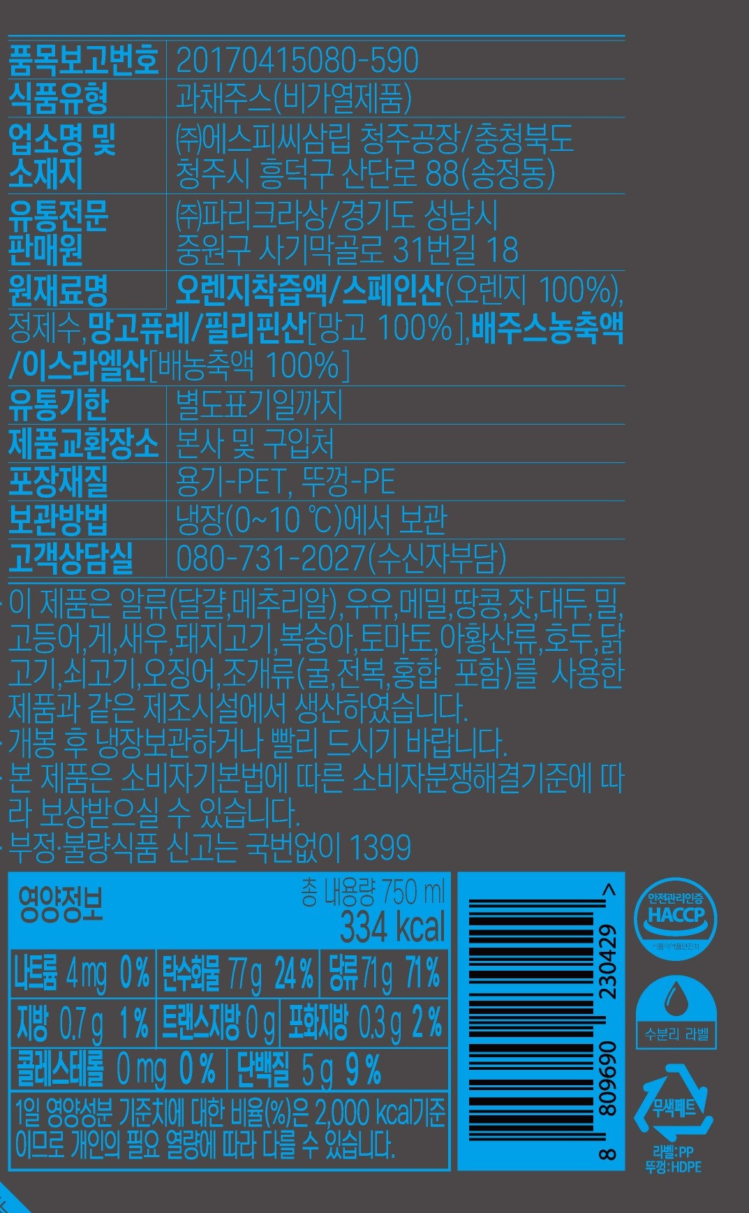 | 제품명 | 트로피칼망고 for family | 식품의 유형 | 컨텐츠 참조 |