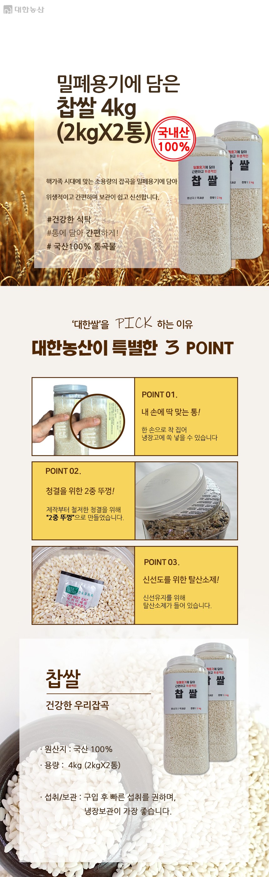 | 생산자(수입자) | (주)대한농산 | 원산지 | 국내산 |