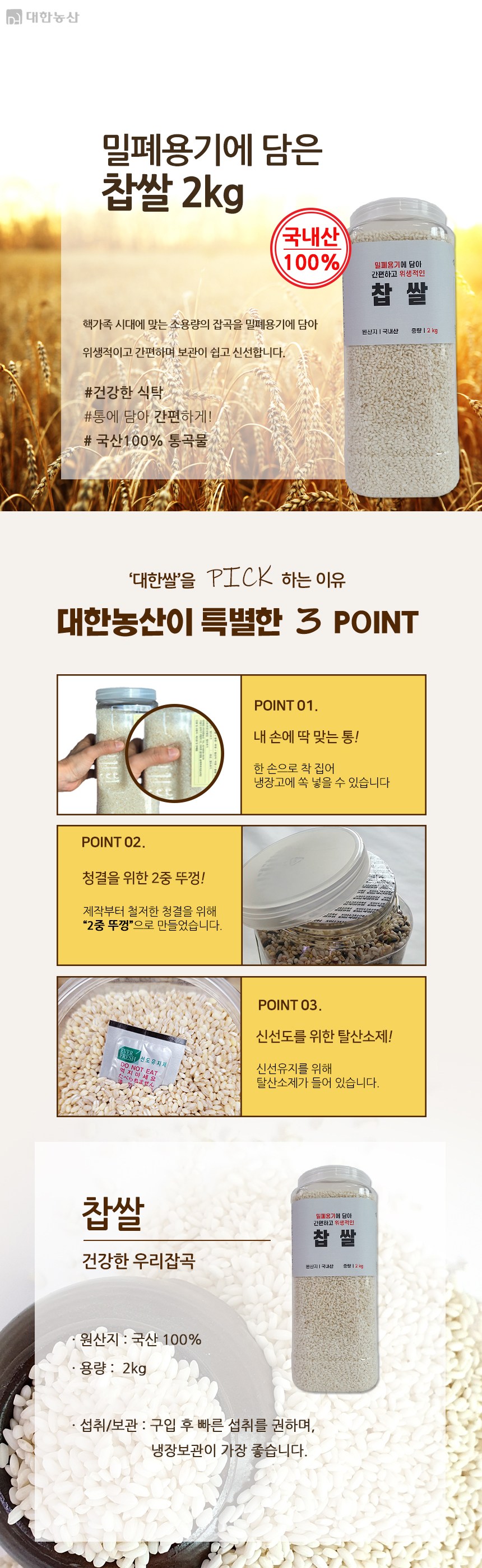 | 생산자(수입자) | (주)대한농산 | 원산지 | 국내산 |