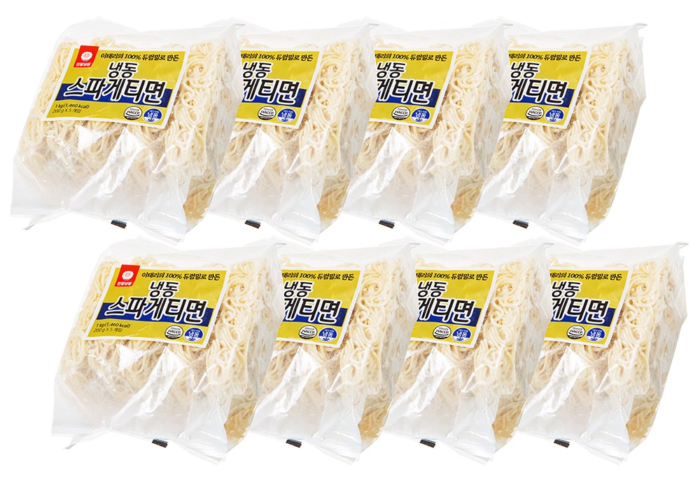 쫄깃하게 삶아낸 스파게티 면을 냉동한 제품이에요. 듀럼휘트 세모리나를 사용해 반죽했어요. 탱글탱글한 면발의 담백한 풍미가 일품이죠. 입맛에 맞는 소스와 재료들을 준비해 맛있는 스파게티를 완성해보세요.