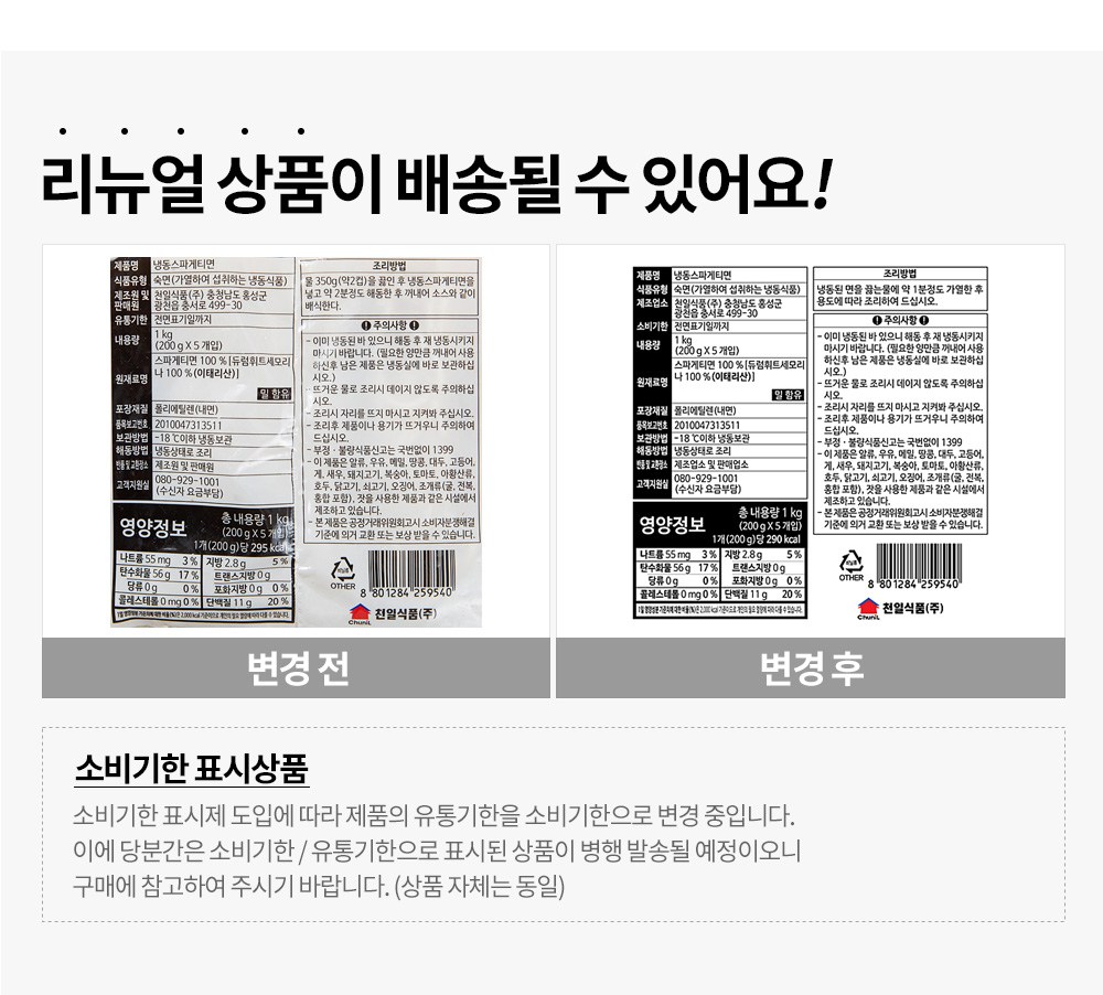 | 생산자 및 소재지 | 천일식품(주) / 충청남도 홍성군 광천읍 충서로 499-30 | 제조연월일, 소비기한 또는 품질유지기한 | 소비기한(또는 유통기한) : 2026년 12월 30일 이거나 그 이후인 상품 제조년월일 : 2025년 12월 31일 이후인 제조상품 |