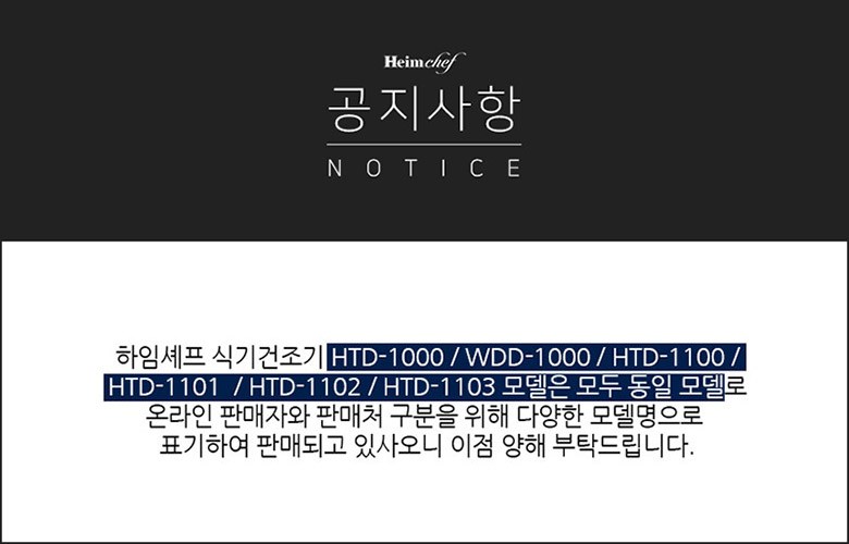 | 품명 및 모델명 | 하임셰프 식기건조기 HTD-1000 | KC 인증정보 | XU070302-19001D,R-R-WXP-HTD-600 |