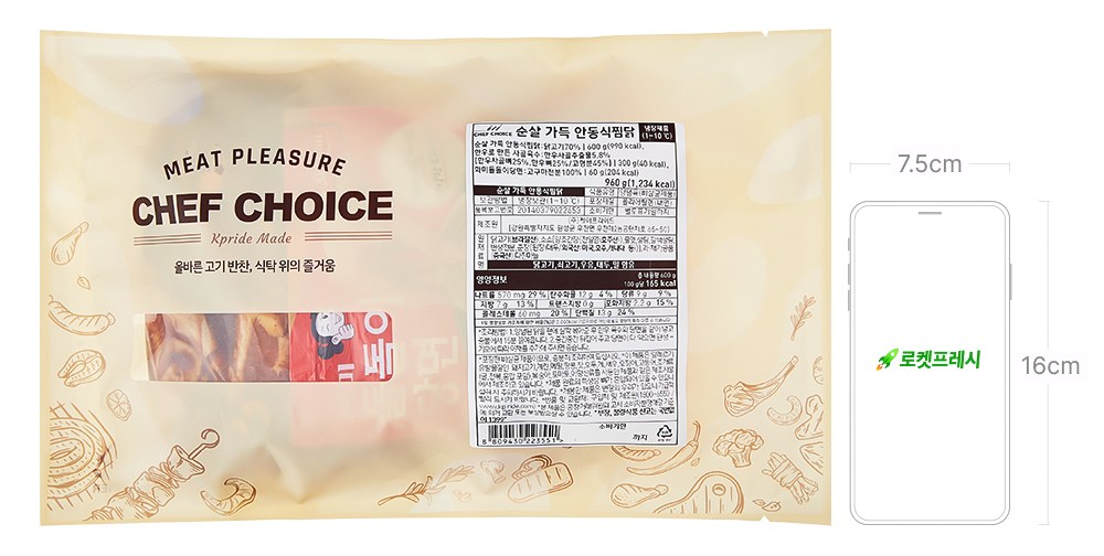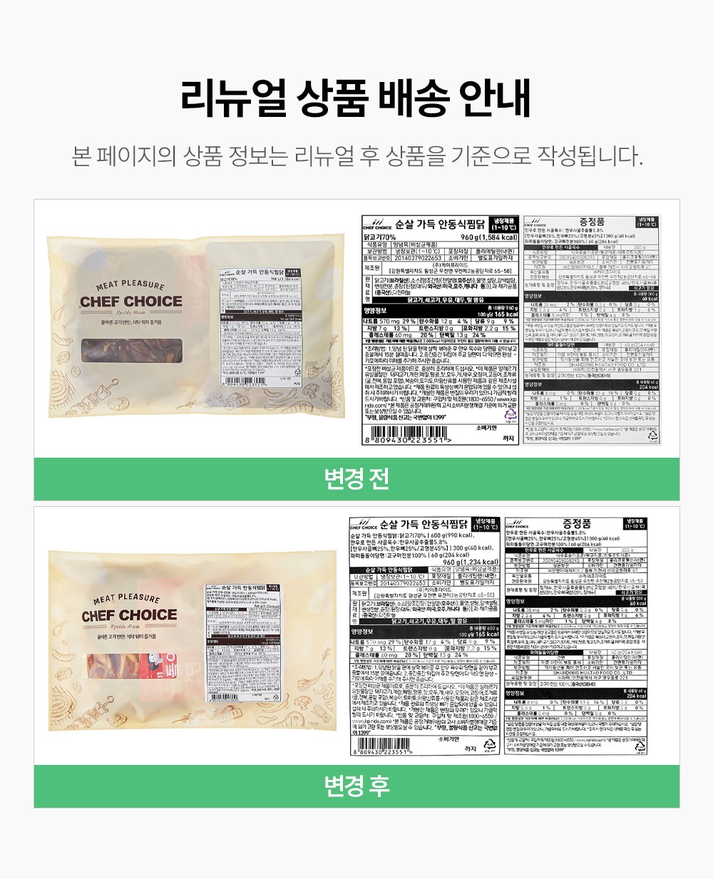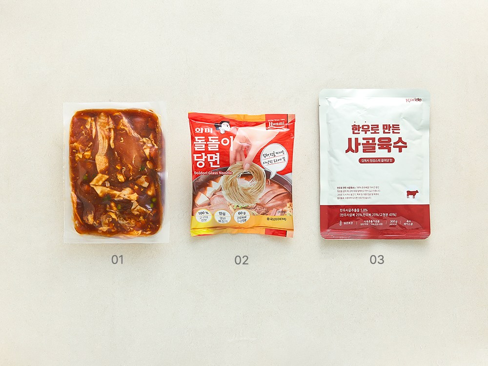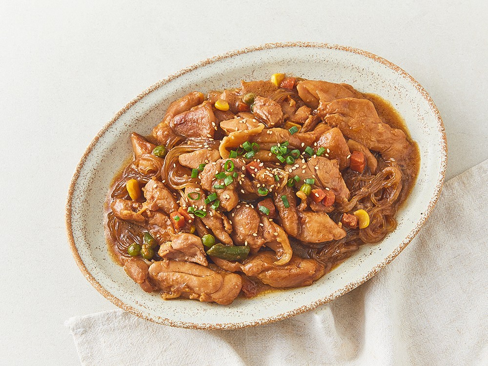 뼈를 발라내는 번거로움 없이, 부드러운 살코기만 담은 순살 가득 안동식 찜닭이에요. 한우로 만든 사골육수로 구수한 풍미를 살렸는데요. 달짝지근한 양념이 쏙 배어든 닭고기와, 찜닭의 또 다른 주인공인 쫄깃한 당면까지 들어있어 아쉬움 없이 푸짐하게 즐기실 수 있죠. 국물에 자작하게 적신 고기와 당면을 흰 쌀밥 위에 올려, 맛있는 한 끼를 완성해보세요.