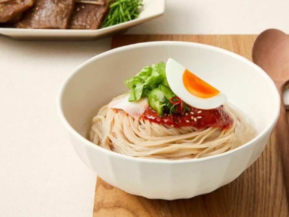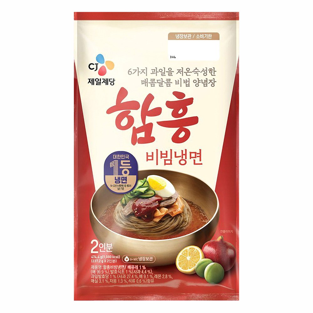 간편하게 완성하는 함흥식 비빔냉면을 소개할게요. 매콤하면서 상큼한 풍미가 일품이랍니다. 시원한 비빔 냉면을 한 젓가락 맛보면, 탱글탱글한 면발에 놀라실지도 몰라요. 쫄깃한 면발과 비빔소스, 여기에 참깨와 김 고명을 더해 풍성하게 즐겨보세요.