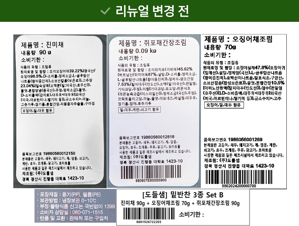 - 구성품: 진미채 + 오징어채조림 + 쥐포채간장조림