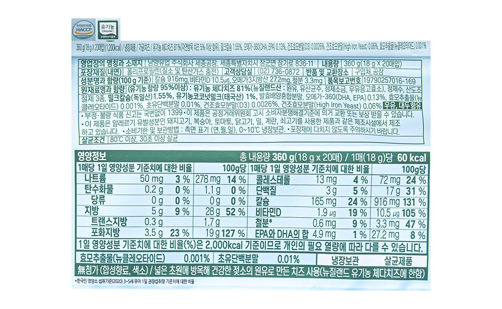 | 제품명 | 드빈치 유기농 어린이치즈 3 | 식품의 유형 | 컨텐츠 참조 |