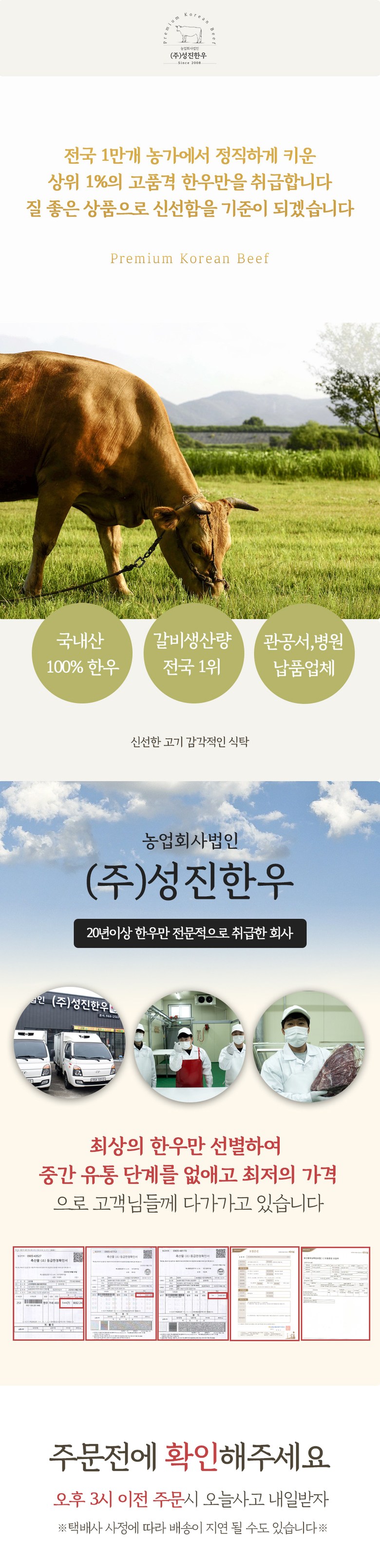 상호/대표자 | 농업회사법인 주식회사 성진한우 / 오영식 | 사업장 소재지 | 대구광역시 북구 도남길 59-1 성진한우 |