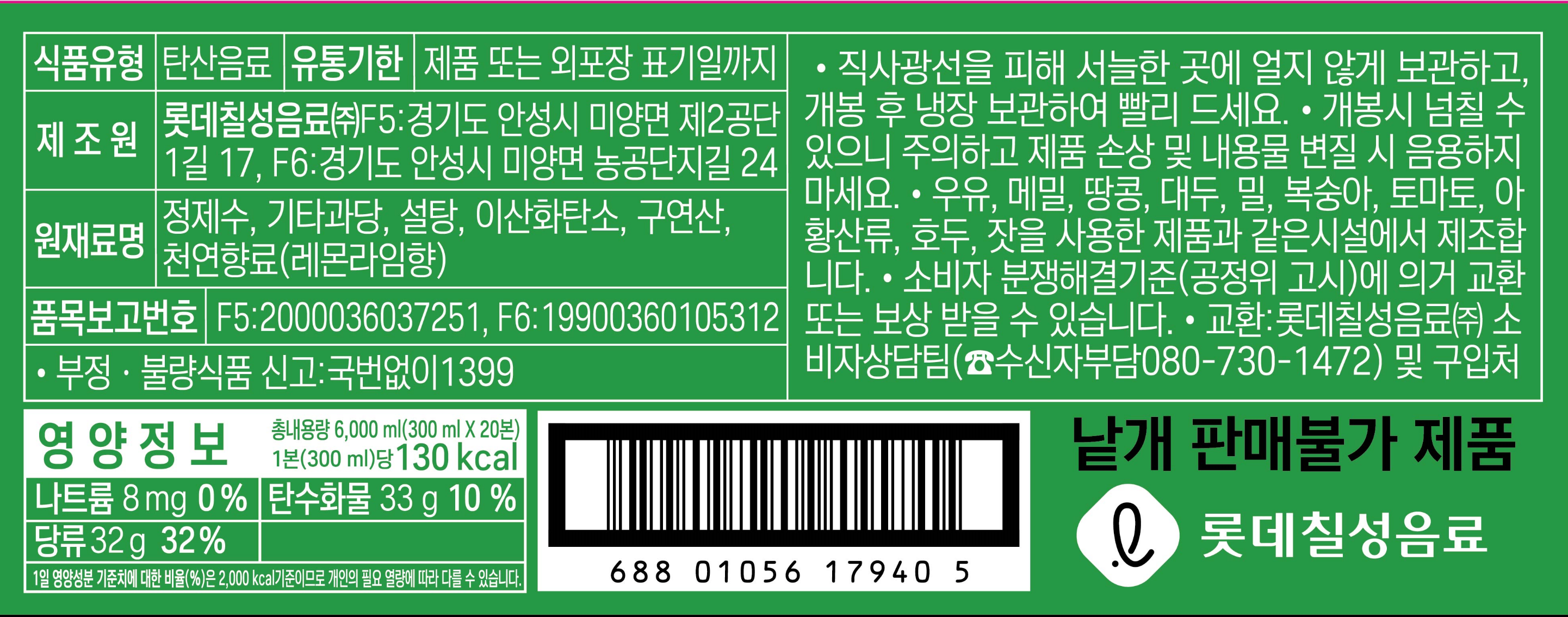 | 제품명 | 칠성사이다 ECO | 식품의 유형 | 탄산음료 |