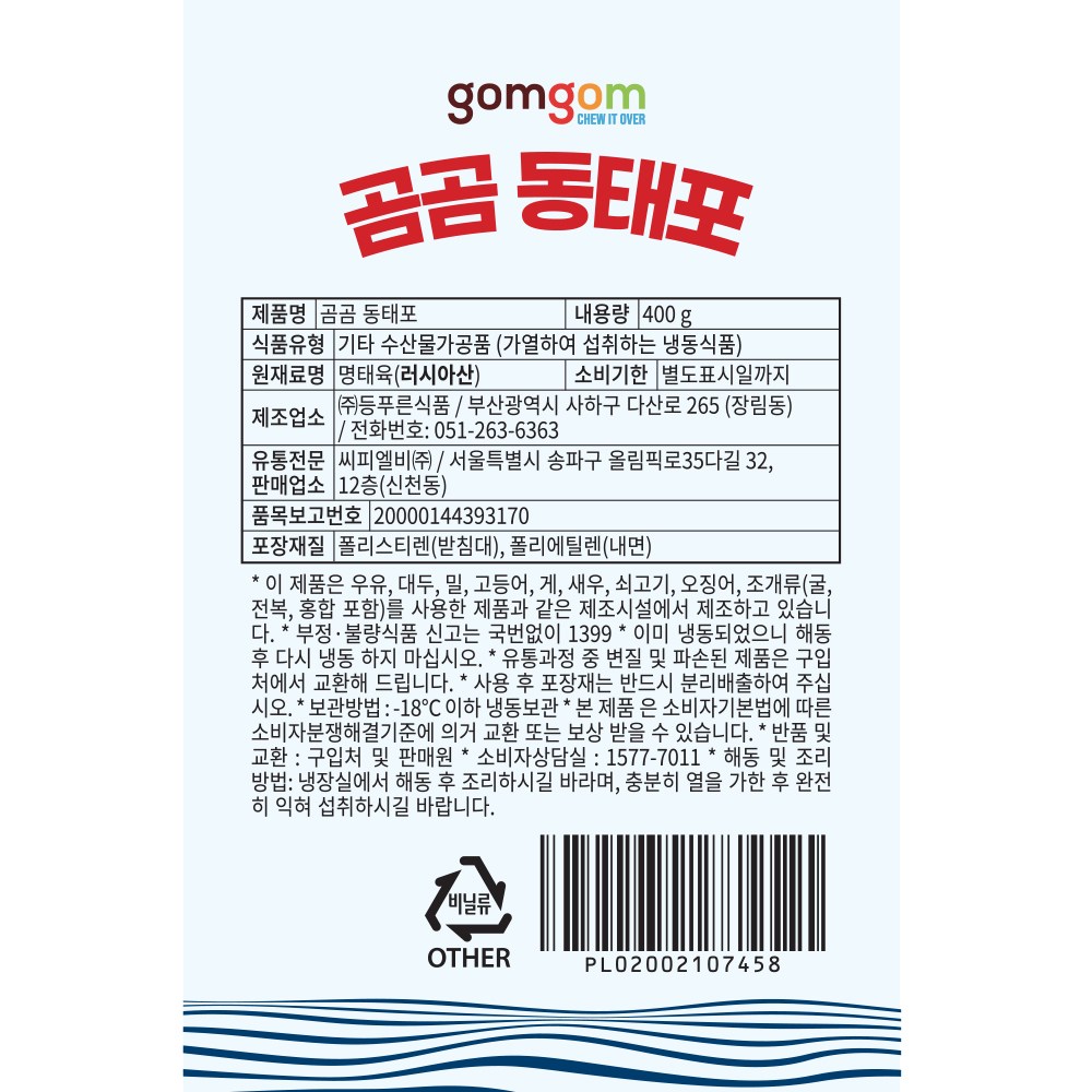 | 제품명 | 곰곰 동태포 | 식품의 유형 | 컨텐츠 참조 |