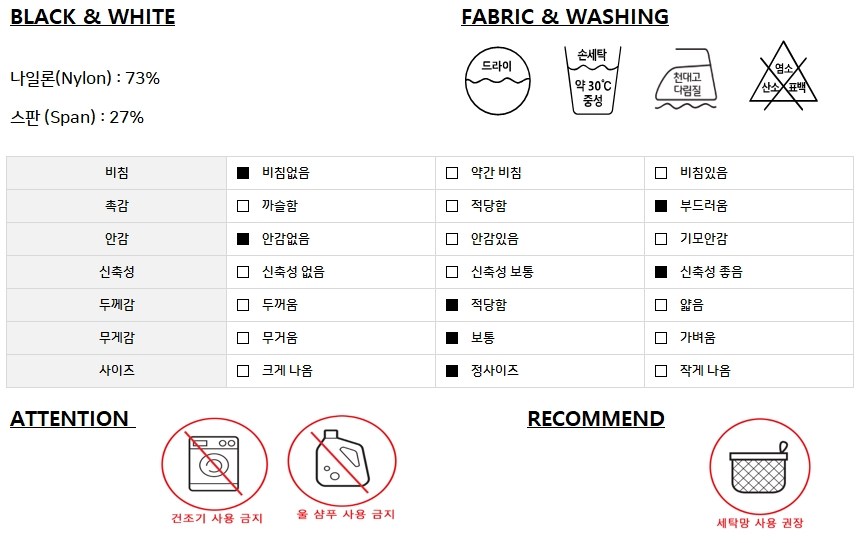 | 제조국 | 베트남 | 세탁방법 및 취급시 주의사항 | 컨텐츠 참조 |