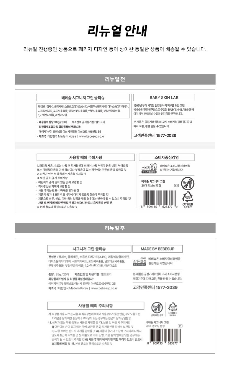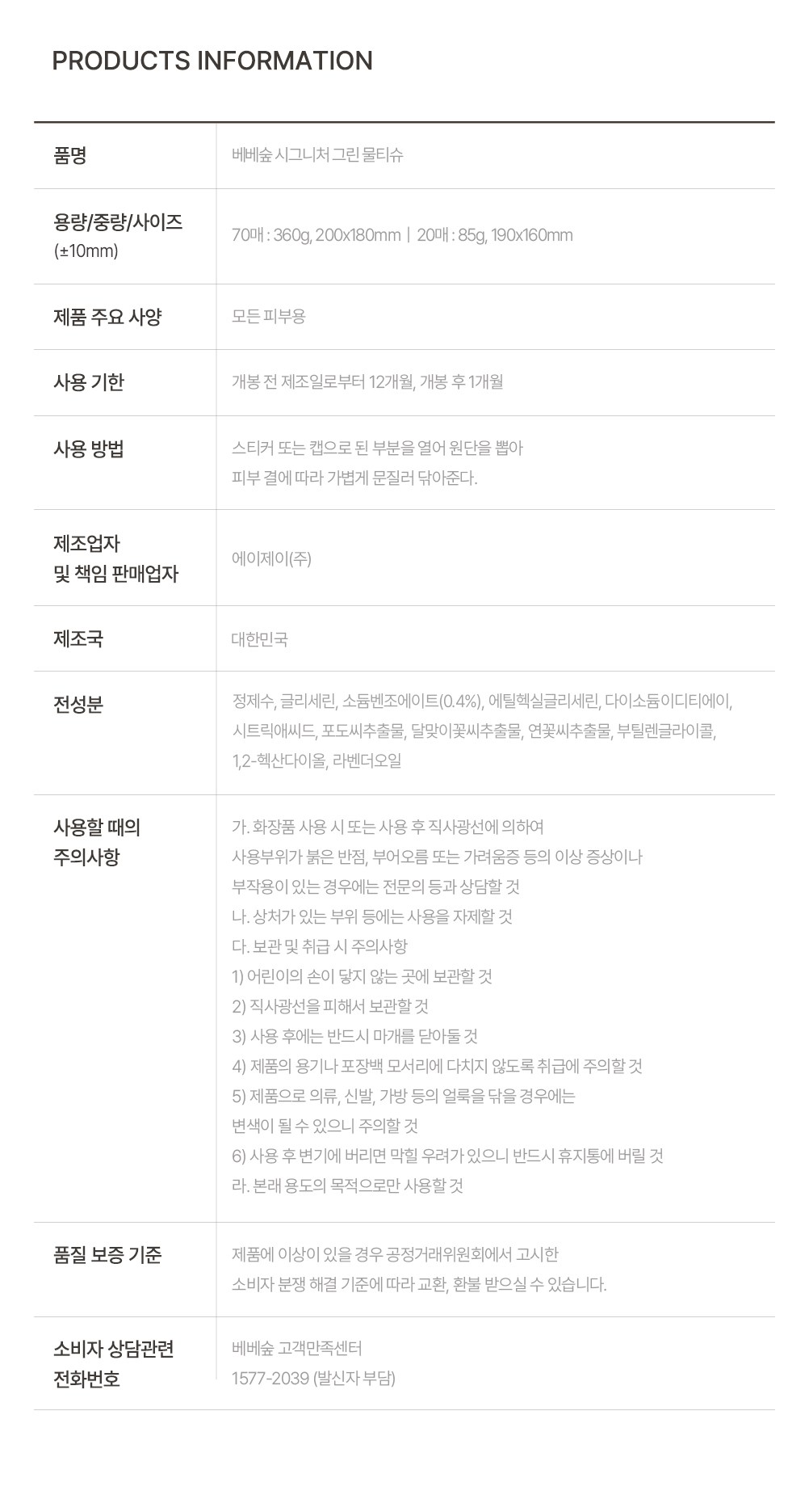 | 용량(중량) | 컨텐츠 참조 | 제품 주요 사양 | 모든 피부용 |