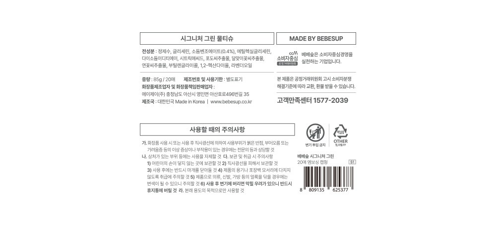 | 화장품제조업자, 화장품책임판매업자 및 맞춤형화장품판매업자 | 컨텐츠 참조 | 제조국 | 한국 |